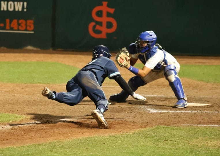 With one out in the seventh inning, pitcher Nate Hui fielded a Christian Navarez bunt to his left in front of the mound and backhand-flipped it to catcher Jack Armstrong, who applied the tag on a headfirst-sliding Ethan Flynn at the plate to preserve Serra's lead and record the second out of the inning.