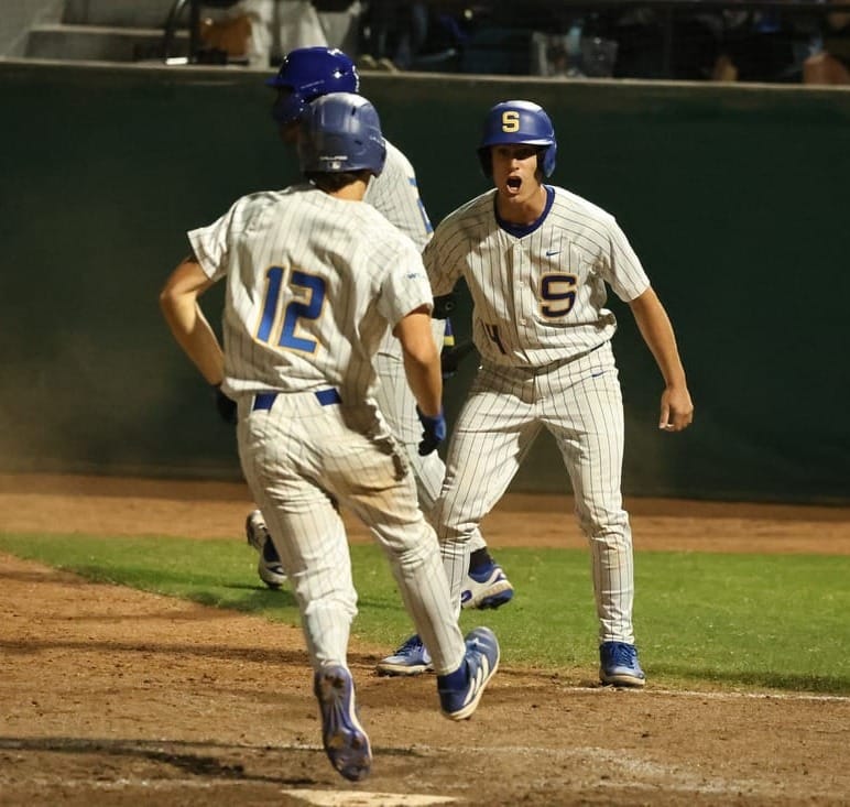 But Hui and the Padres weren't out of the woods yet. After balking two runners into scoring position, he caught Quinten Marsh – the WCAL player of the year and batting champion – looking at a full-count curveball to end the game as the Padres stormed onto the field and did an epic dogpile near the pitcher's mound.